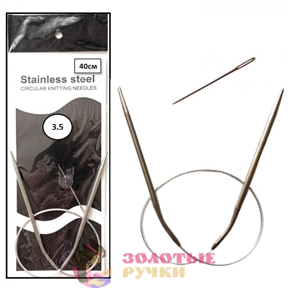 Спицы для вязания круговые металлические на тросике. Размер: 40 см. Диаметр: 3,5 мм