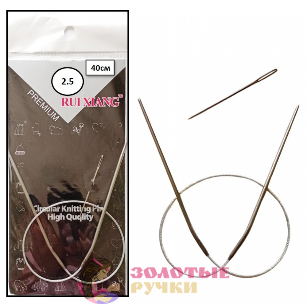 Спицы для вязания круговые металлические на тросике. Размер: 40 см. Диаметр: 2,5 мм
