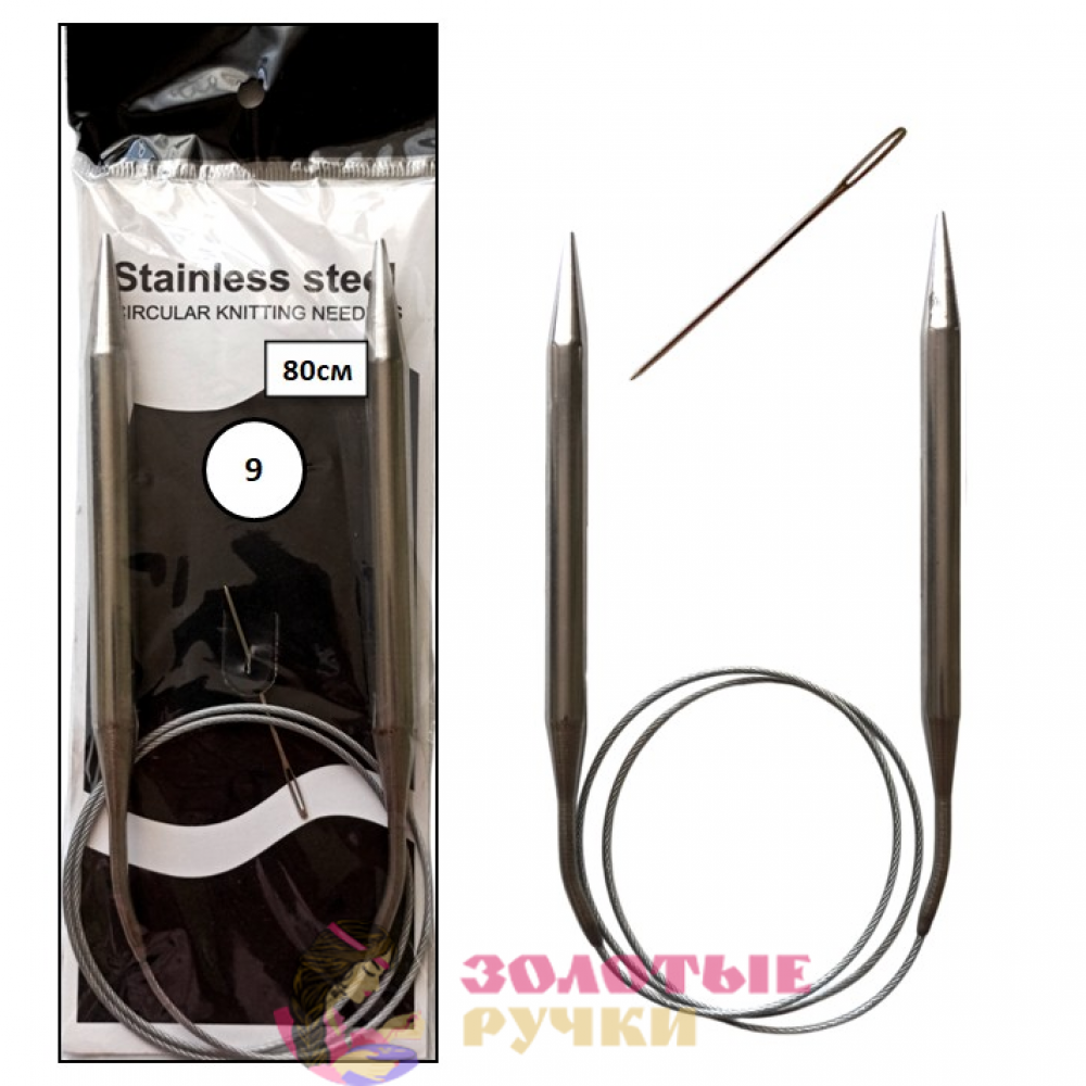 Спицы для вязания круговые металлические на тросике. Размер: 80 см. Диаметр: 9 мм