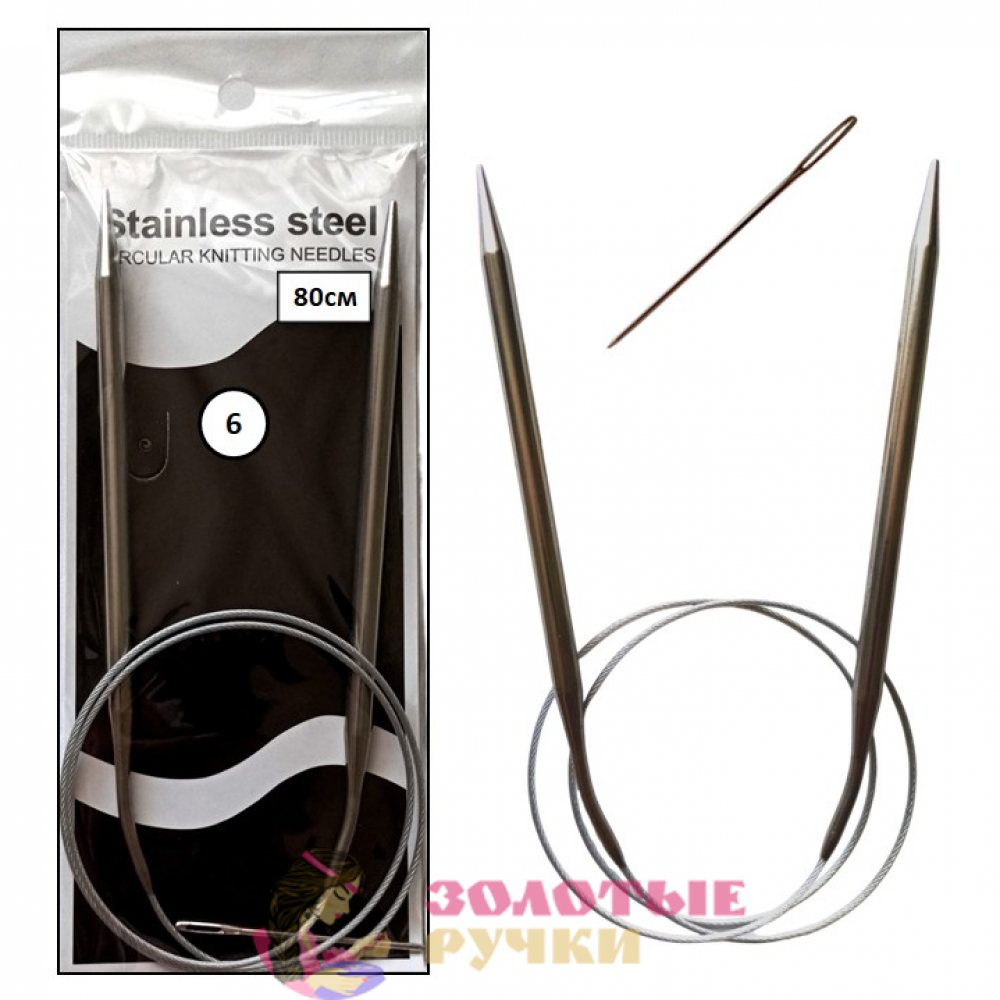 Спицы для вязания круговые металлические на тросике. Размер: 80 см. Диаметр: 6 мм