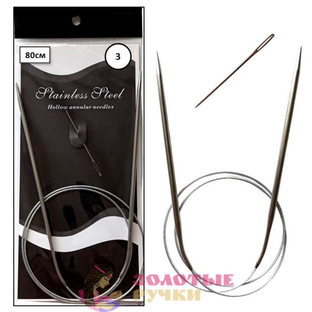 Спицы для вязания круговые металлические на тросике. Размер: 80 см. Диаметр: 3 мм