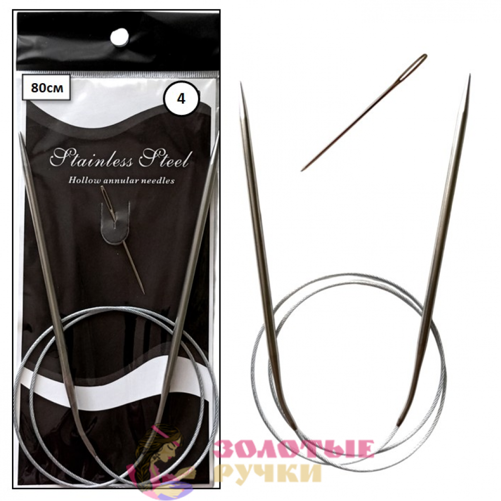Спицы для вязания круговые металлические на тросике. Размер: 80 см. Диаметр: 4 мм