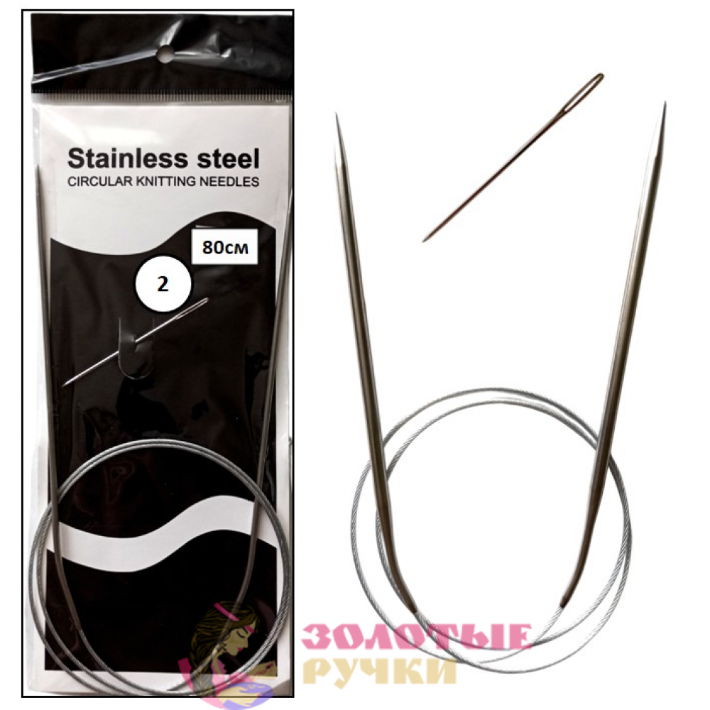 Спицы для вязания круговые металлические на тросике. Размер: 80 см. Диаметр: 2 мм