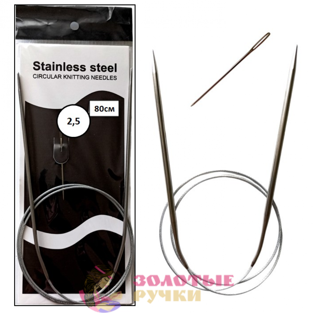 Спицы для вязания круговые металлические на тросике. Размер: 80 см. Диаметр: 2,5 мм