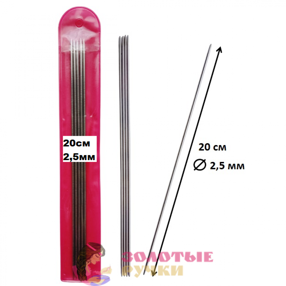 Спицы носочные для вязания. Размер: 20 см. Диаметр: 2,5 мм. Количество в упаковке: 5 шт.