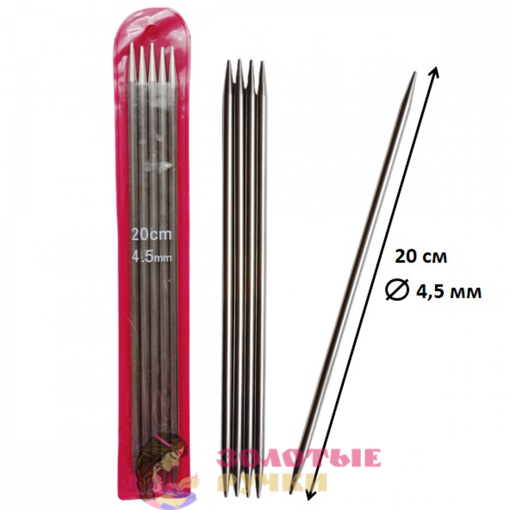 Спицы носочные для вязания. Размер: 20 см. Диаметр: 4,5 мм. Количество в упаковке: 5 шт.