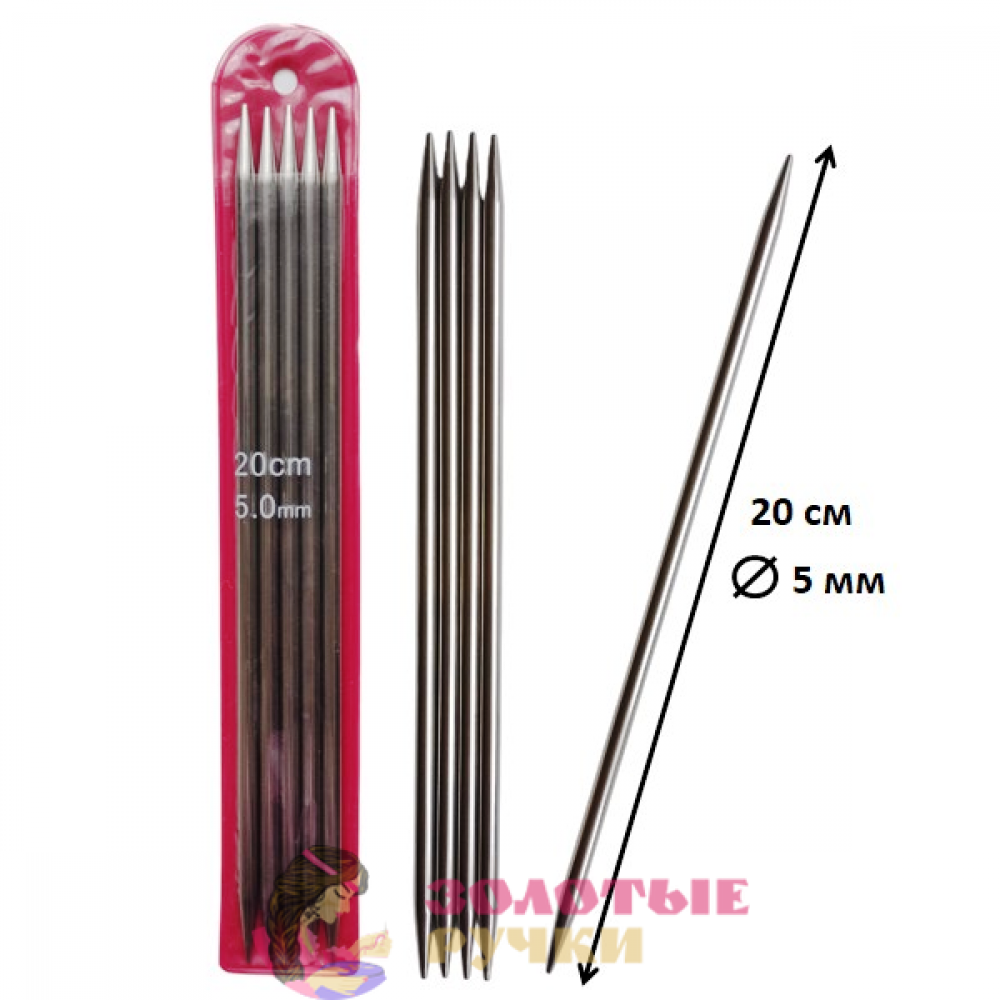 Спицы носочные для вязания. Размер: 20 см. Диаметр: 5 мм. Количество в упаковке: 5 шт.