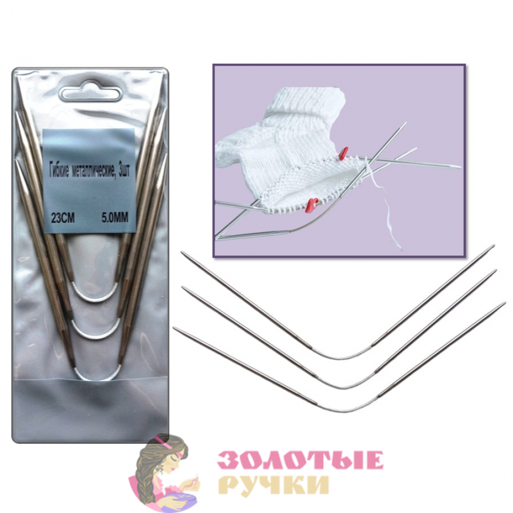 Спицы носочные гибкие металлические. Размер: 5 мм. Количество в упаковке: 3 шт.