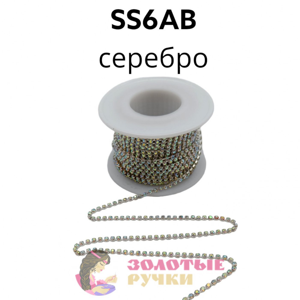 Стразы на бобине в серебряной оправе на металлической основе (в бобине 9,14 м ), размер SS6AB цвет хамелеон