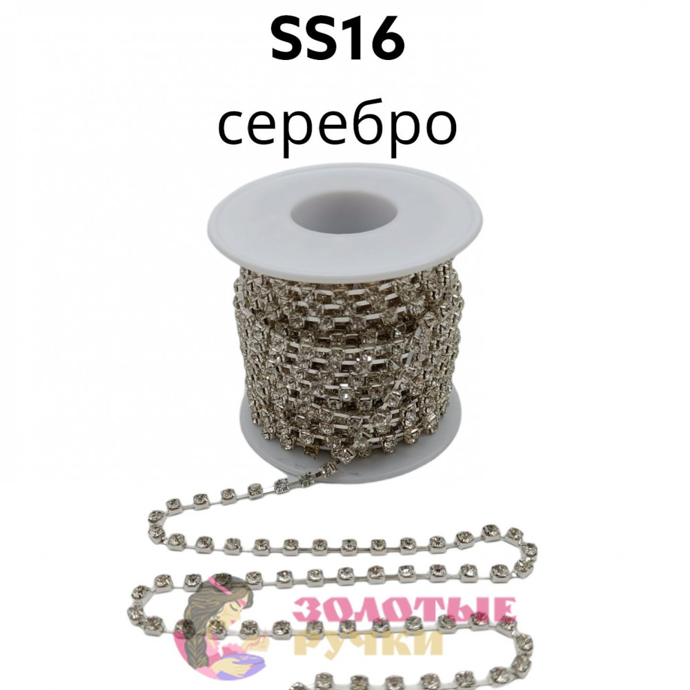 Стразы на бобине в серебряной оправе на металлической основе (в бобине 9,14 м ), размер SS16 цвет белый