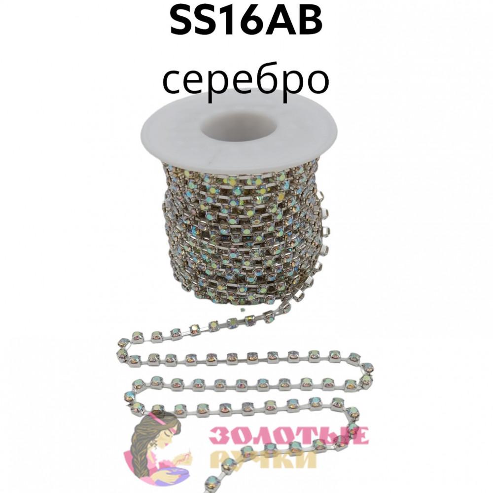 Стразы на бобине в серебряной оправе на металлической основе (в бобине 9,14 м ), размер SS16AB цвет хамелеон