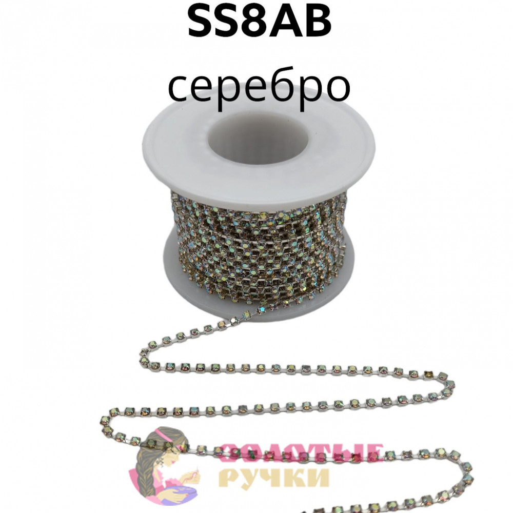 Стразы на бобине в серебряной оправе на металлической основе (в бобине 9,14 м ), размер SS8AB цвет хамелеон
