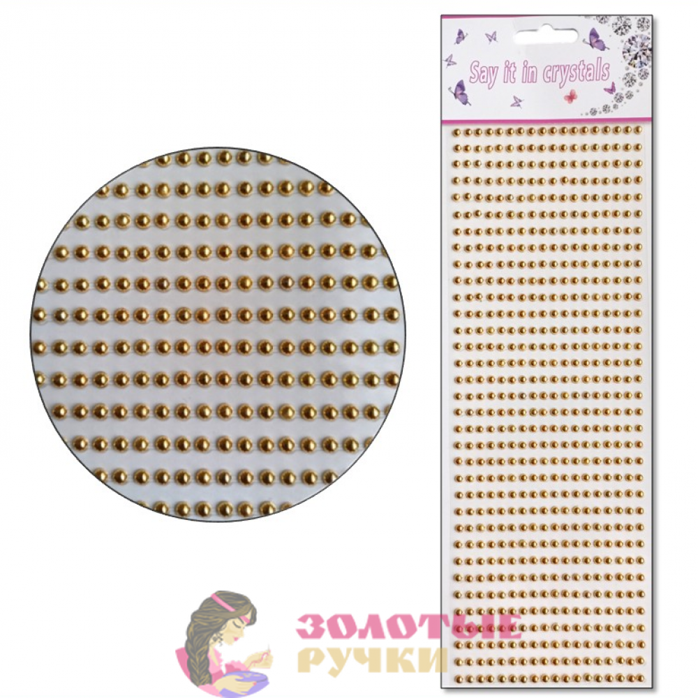Стразы-полубусины самоклеящиеся. Размер: 4 мм. Цвет: золото.