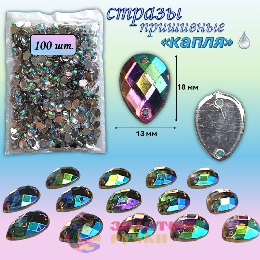 Стразы пришивные "Капля". Диаметр: 13*18 мм. Количество в упаковке: 100 шт. Цвет: АВ хамелеон