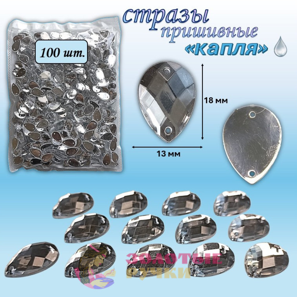 Стразы пришивные "Капля". Диаметр: 13*18 мм. Количество в упаковке: 100 шт. Цвет: белый