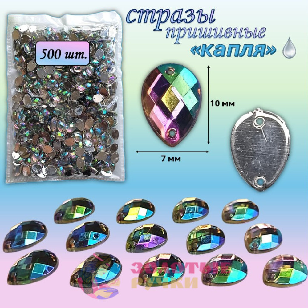 Стразы пришивные "Капля". Диаметр: 7*10 мм. Количество в упаковке: 500 шт. Цвет: АВ хамелеон