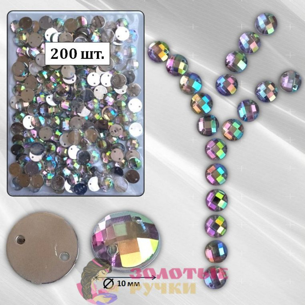 Стразы пришивные круглые. Диаметр: 10 мм. Количество в упаковке: 200 шт. Цвет: АВ хамелеон