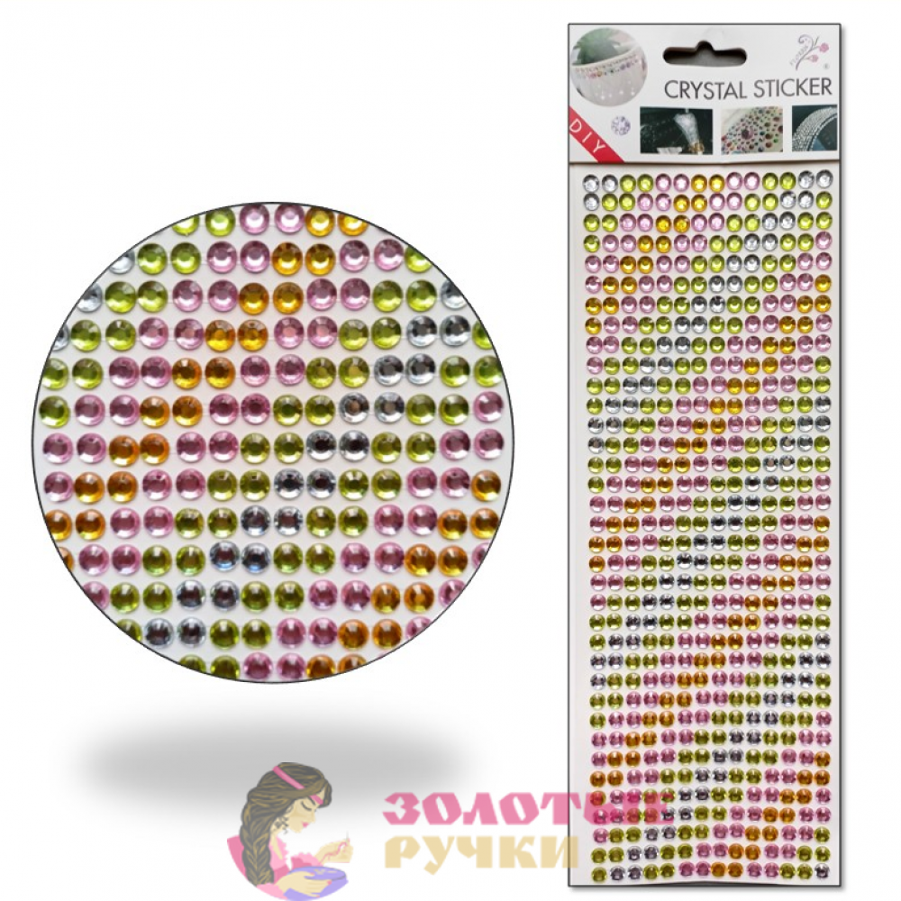 Стразы самоклеящиеся. Размер: 6 мм. Цвет: зелено-розовый микс.