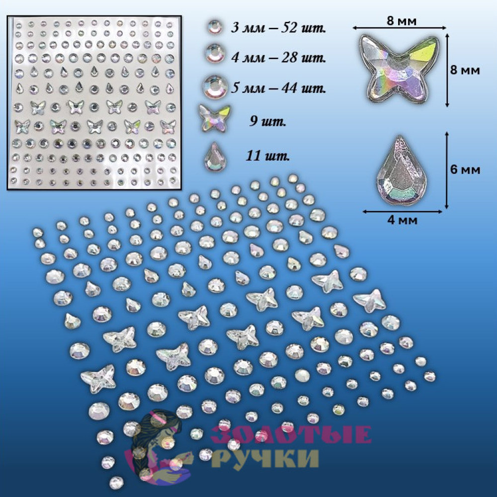 Стразы самоклеющиеся "Ассорти". Цвет: прозрачный хамелеон