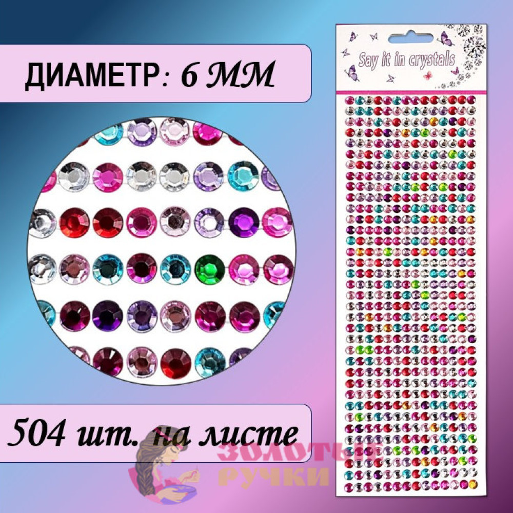 Стразы самоклеющиеся. Диаметр: 6 мм. Цвет: ассорти