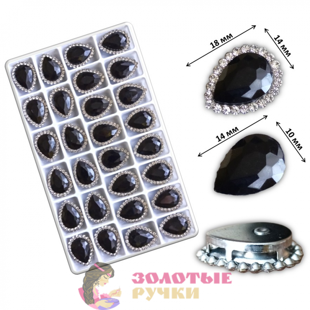 Стразы в металлических цапах пришивные "КАПЛЯ". Цвет: черный. Количество в упаковке: 28 шт.