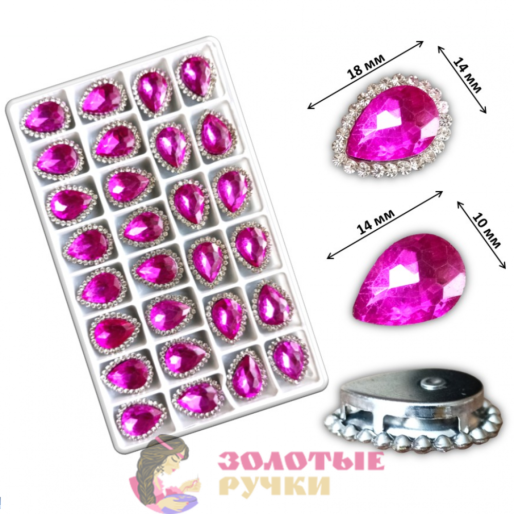 Стразы в металлических цапах пришивные "КАПЛЯ". Цвет: малиновый. Количество в упаковке: 28 шт.