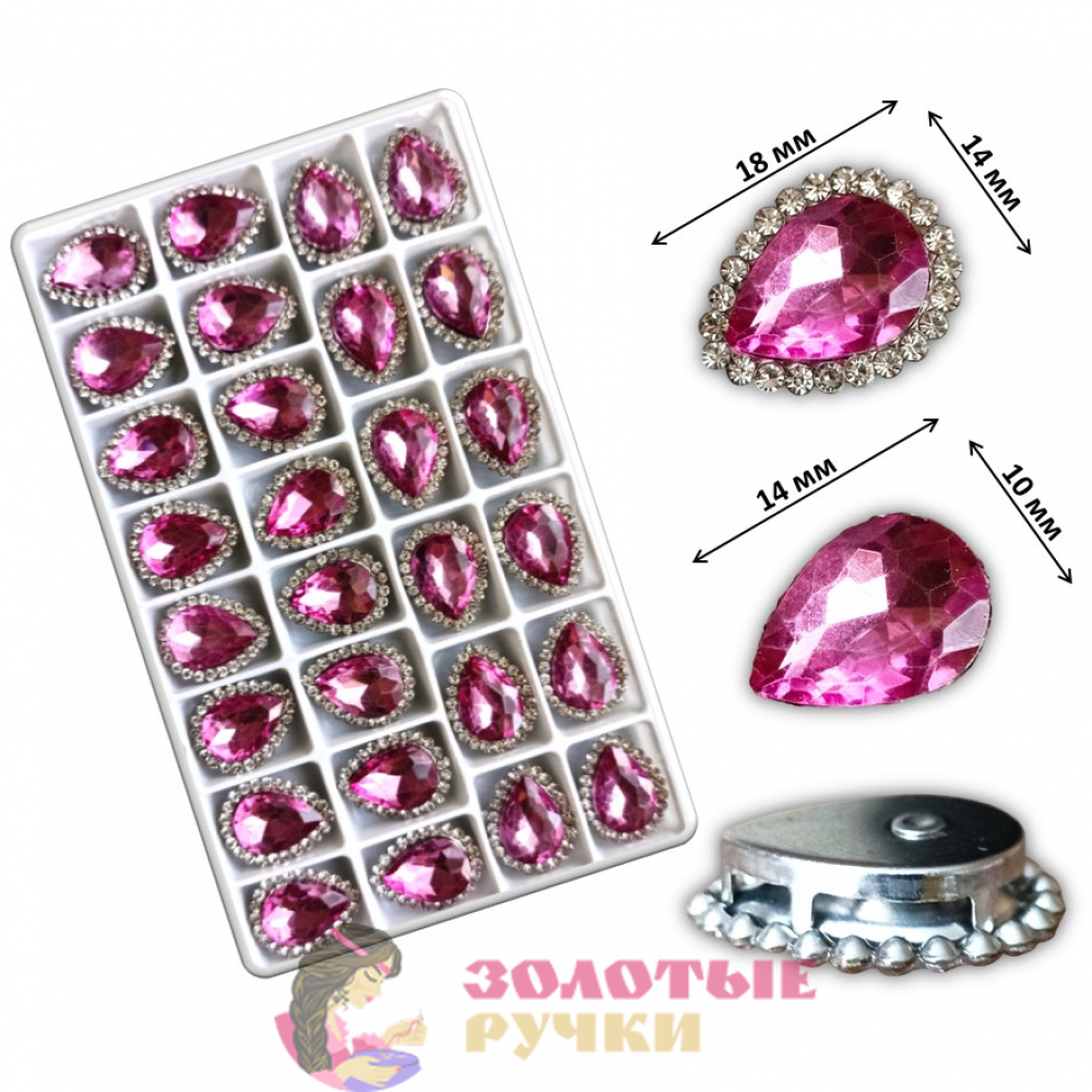 Стразы в металлических цапах пришивные "КАПЛЯ". Цвет: розовый. Количество в упаковке: 28 шт.
