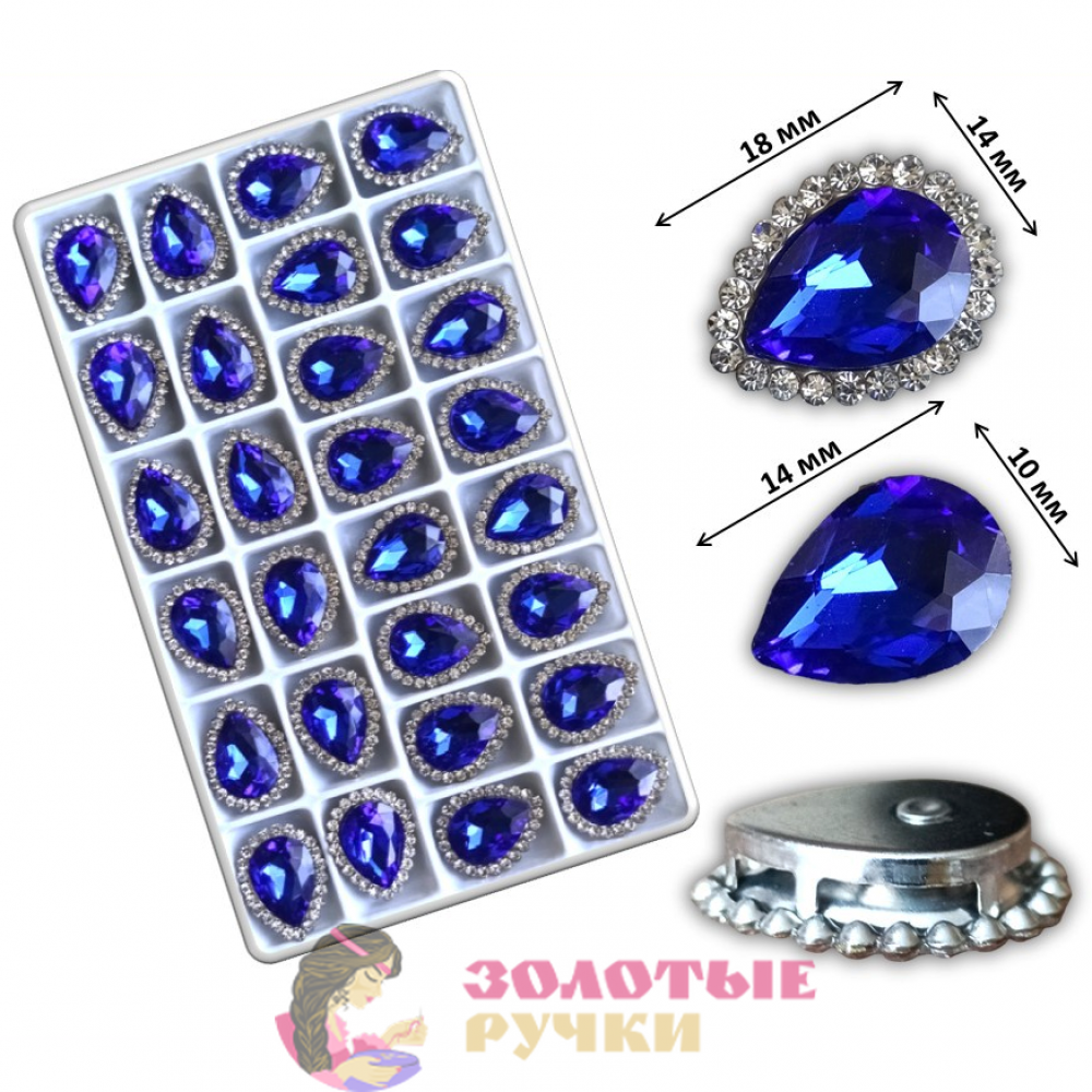 Стразы в металлических цапах пришивные "КАПЛЯ". Цвет: синий. Количество в упаковке: 28 шт.