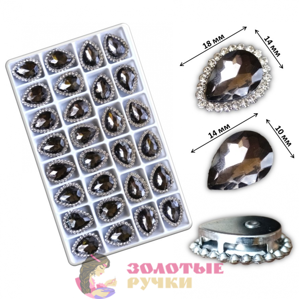 Стразы в металлических цапах пришивные "КАПЛЯ". Цвет: черный прозрачный. Количество в упаковке: 28 шт.