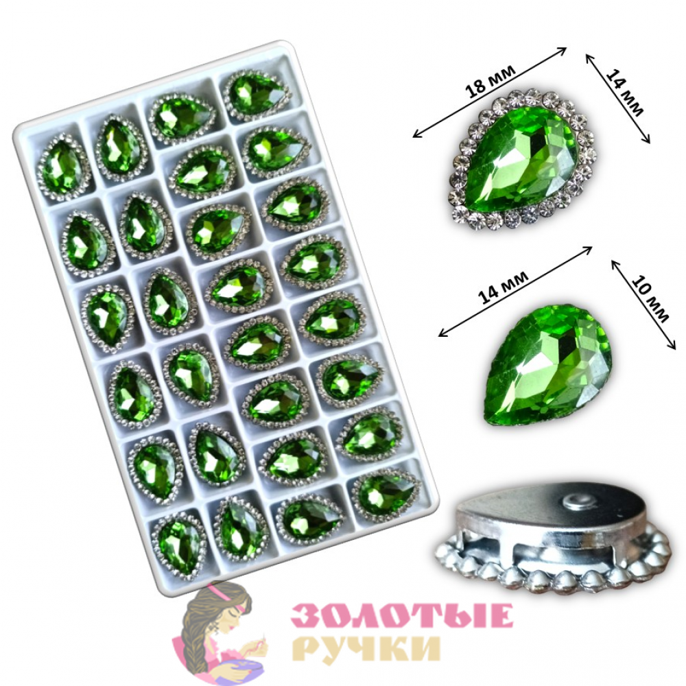 Стразы в металлических цапах пришивные "КАПЛЯ". Цвет: светло-зеленый. Количество в упаковке: 28 шт.