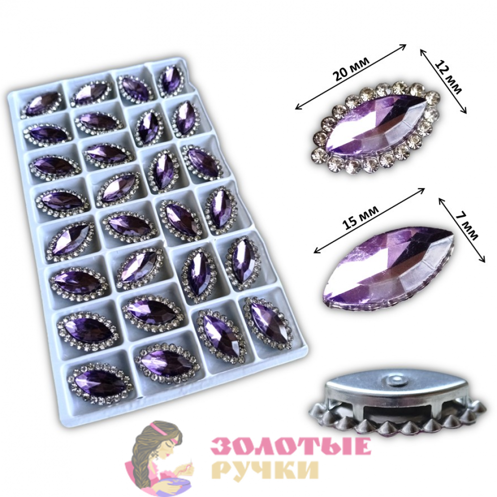 Стразы в металлических цапах пришивные "ЛОДОЧКА". Цвет: фиолетовый. Количество в упаковке: 28 шт.