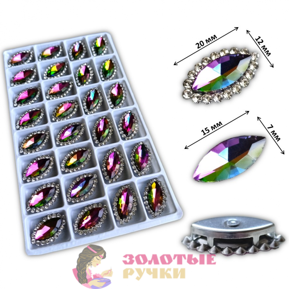Стразы в металлических цапах пришивные "ЛОДОЧКА". Цвет: хамелеон. Количество в упаковке: 28 шт.