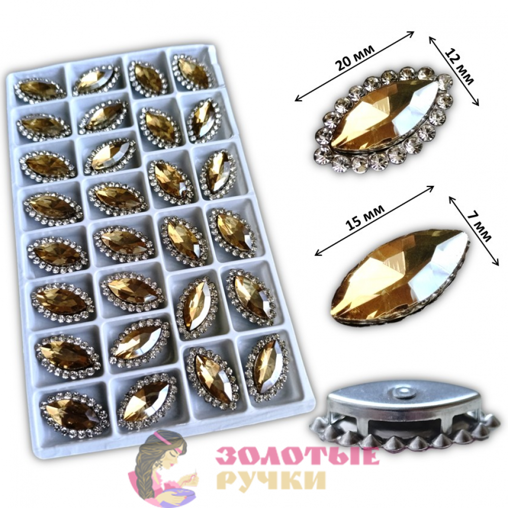 Стразы в металлических цапах пришивные "ЛОДОЧКА". Цвет: светло-желтый. Количество в упаковке: 28 шт.