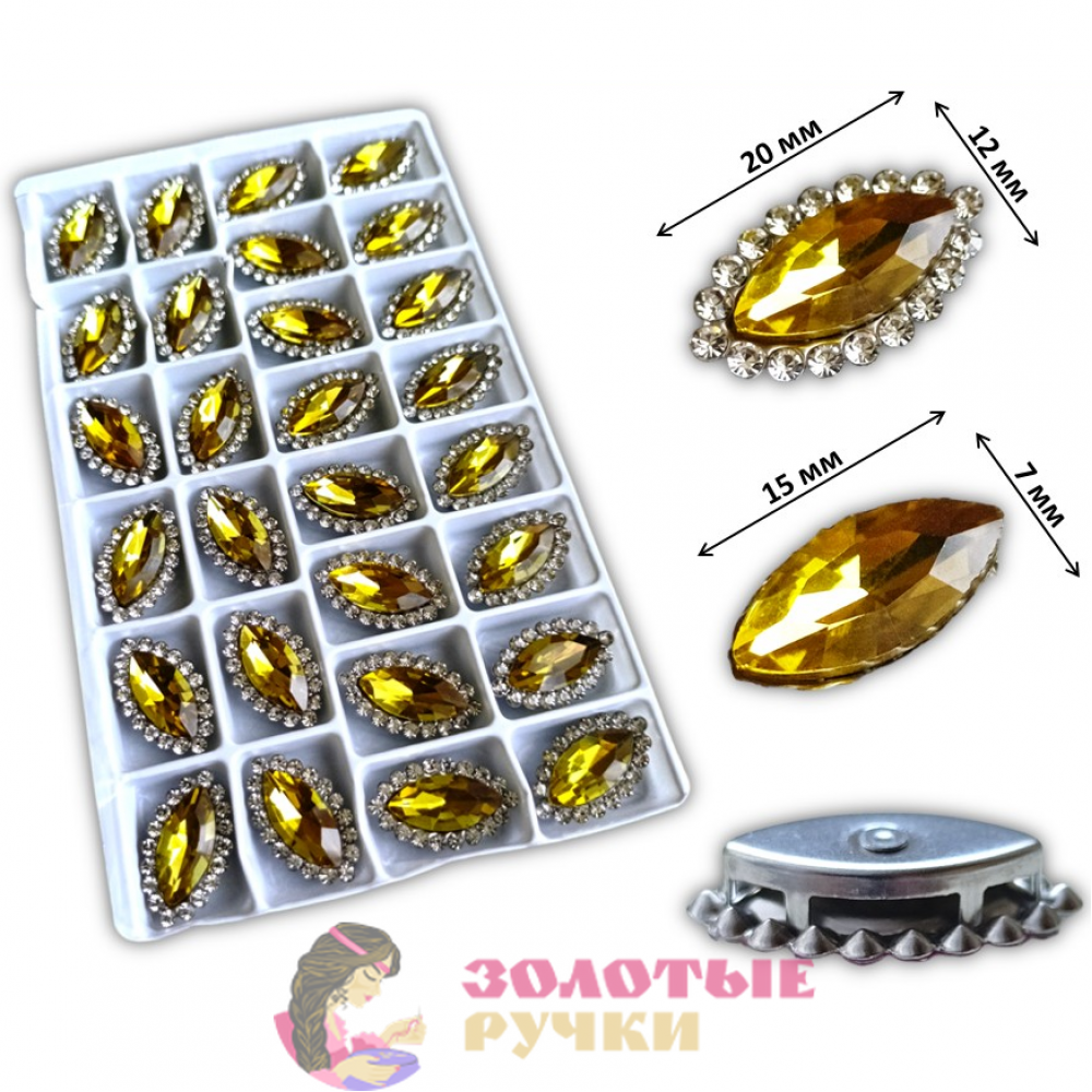 Стразы в металлических цапах пришивные "ЛОДОЧКА". Цвет: желтый. Количество в упаковке: 28 шт.