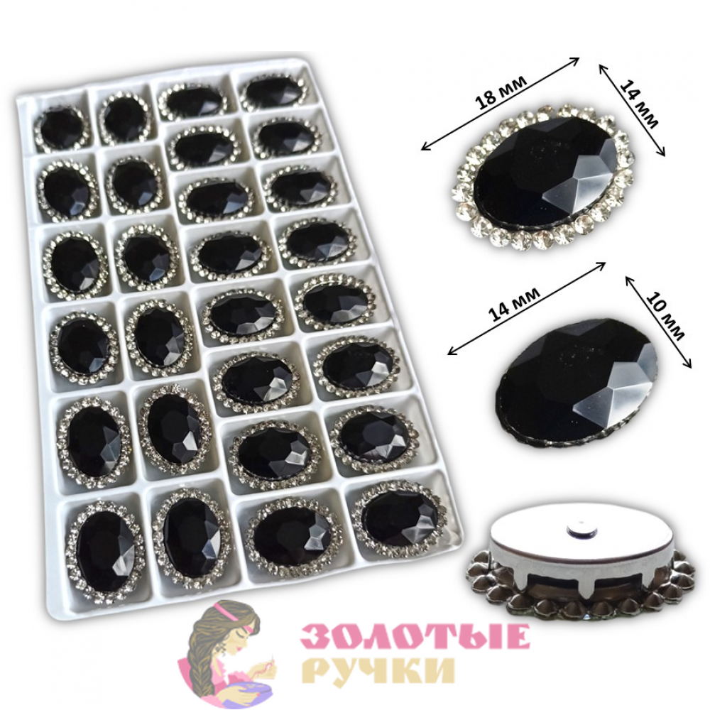 Стразы в металлических цапах пришивные "ОВАЛ". Цвет: черный. Количество в упаковке: 28 шт.