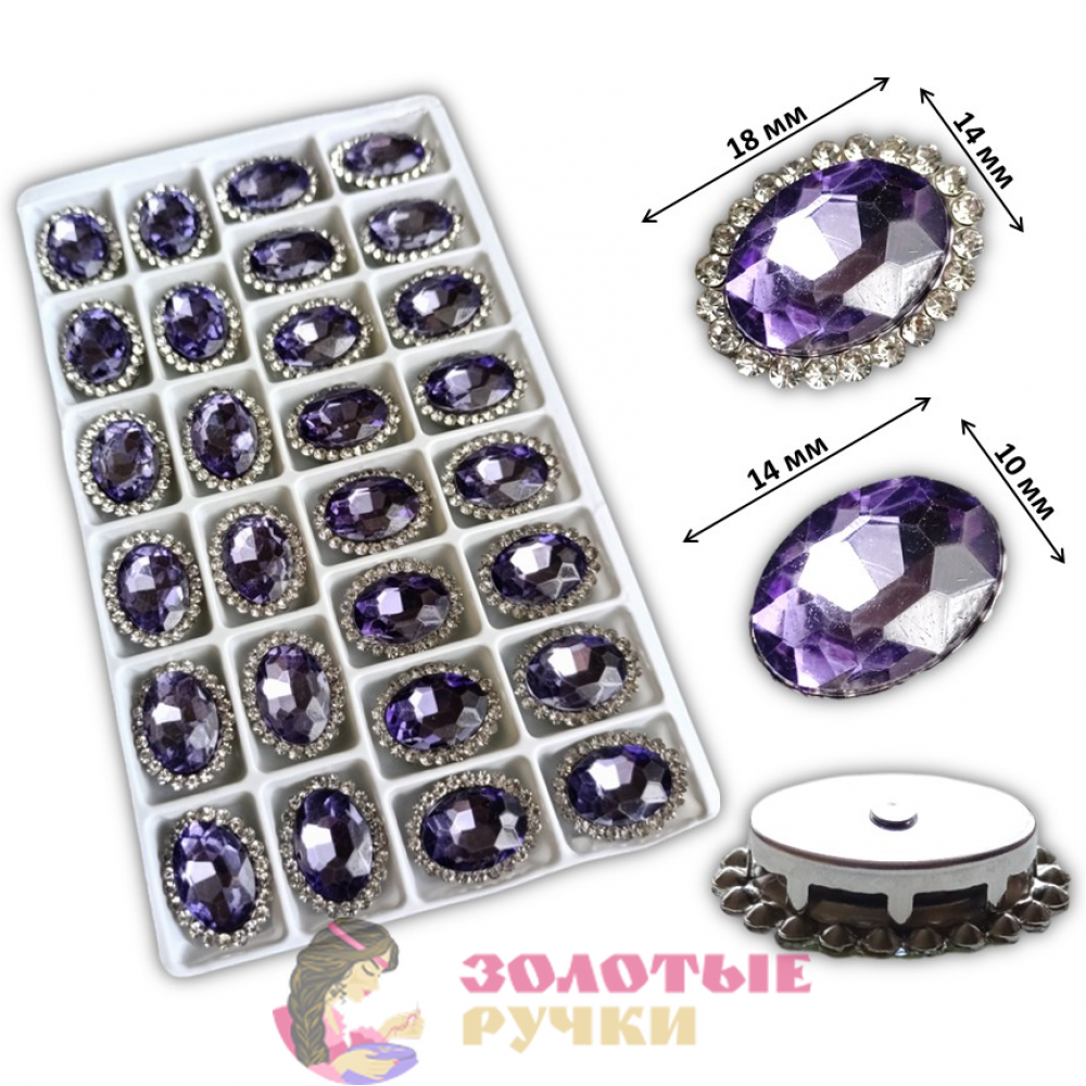 Стразы в металлических цапах пришивные "ОВАЛ". Цвет: фиолетовый. Количество в упаковке: 28 шт.