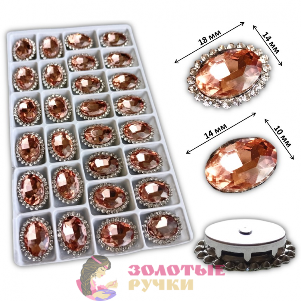 Стразы в металлических цапах пришивные "ОВАЛ". Цвет: персиковый. Количество в упаковке: 28 шт.