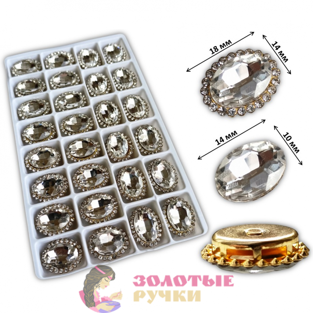Стразы в металлических цапах пришивные "ОВАЛ". Цвет: прозрачный в золоте. Количество в упаковке: 28 шт.
