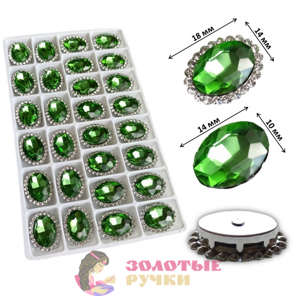 Стразы в металлических цапах пришивные "ОВАЛ". Цвет: светло-зеленый. Количество в упаковке: 28 шт.