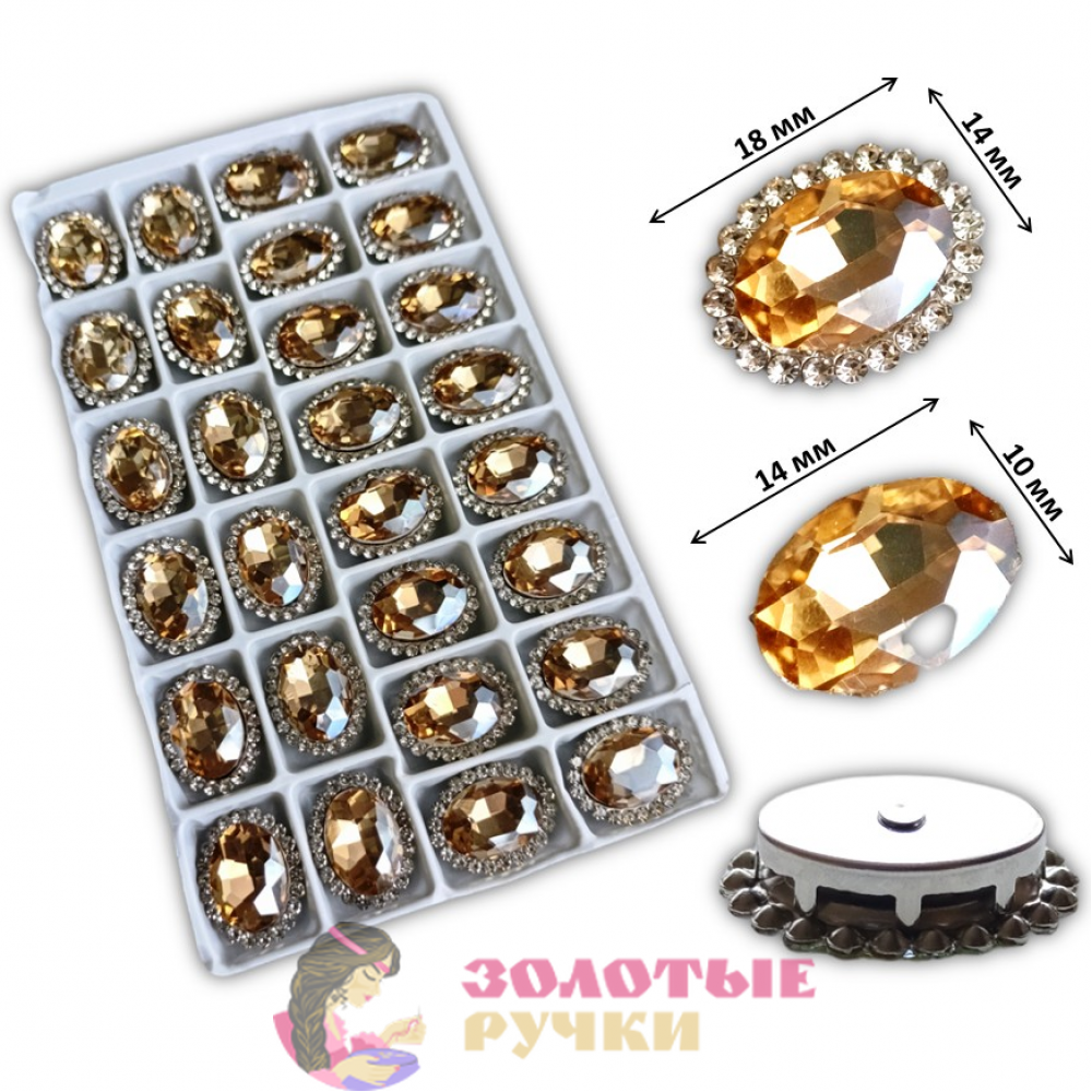 Стразы в металлических цапах пришивные "ОВАЛ". Цвет: светло-золотой. Количество в упаковке: 28 шт.