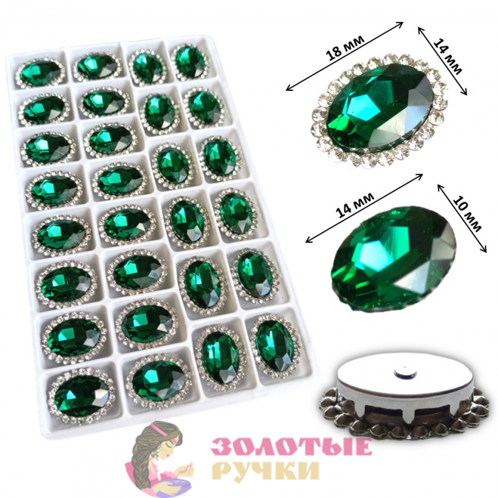Стразы в металлических цапах пришивные "ОВАЛ". Цвет: зеленый. Количество в упаковке: 28 шт.