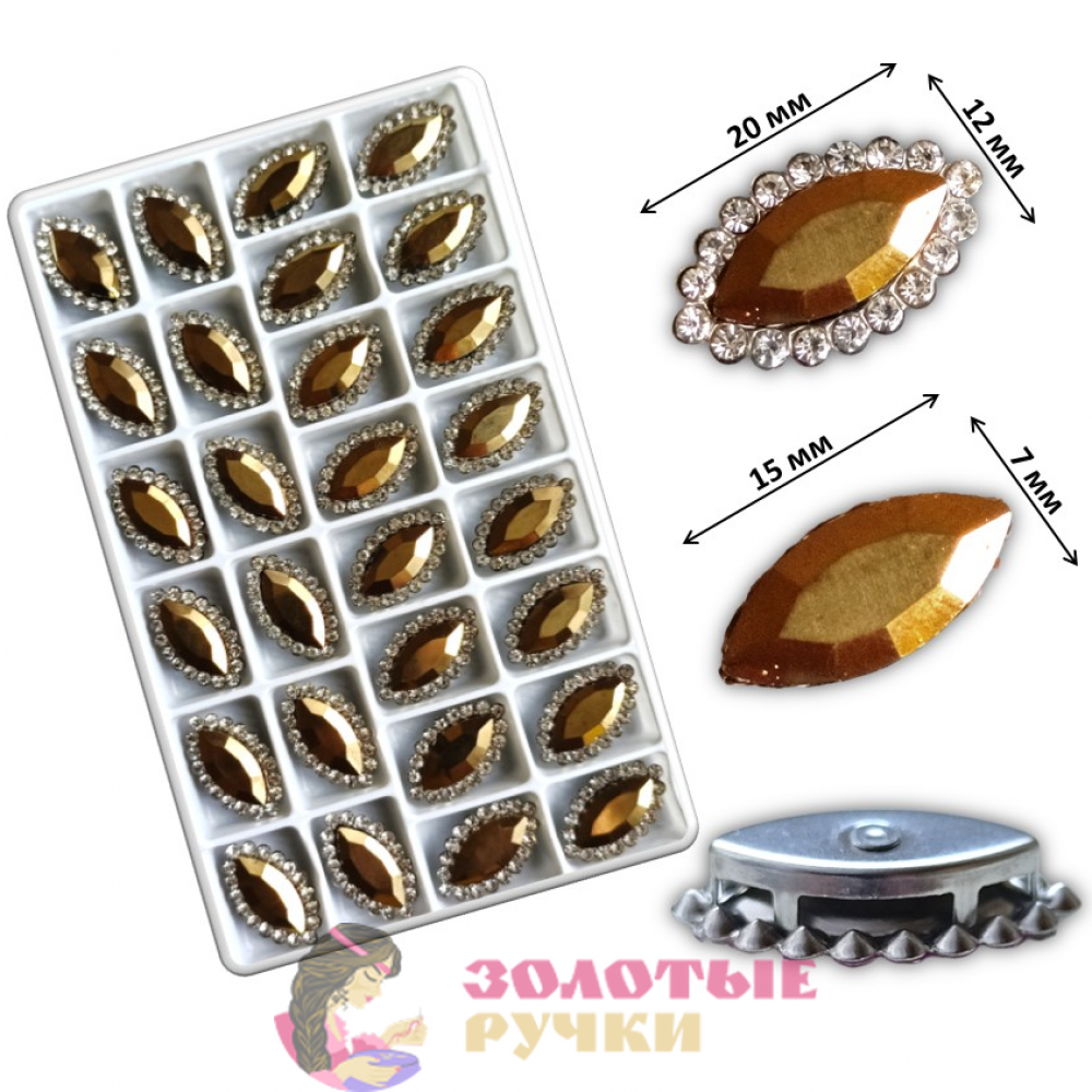 Стразы в металлических цапах пришивные "ЛОДОЧКА". Цвет: золото. Количество в упаковке: 28 шт.