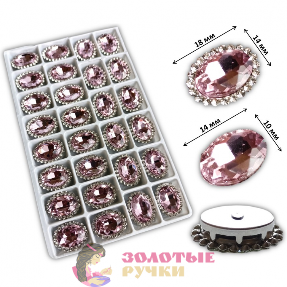 Стразы в металлических цапах пришивные "ОВАЛ". Цвет: светло-розовый. Количество в упаковке: 28 шт.