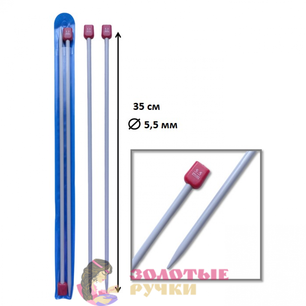 Спицы тефлоновые прямые. Размер: 35 см. Диаметр: 5,5 мм. Количество в упаковке: 2 шт.