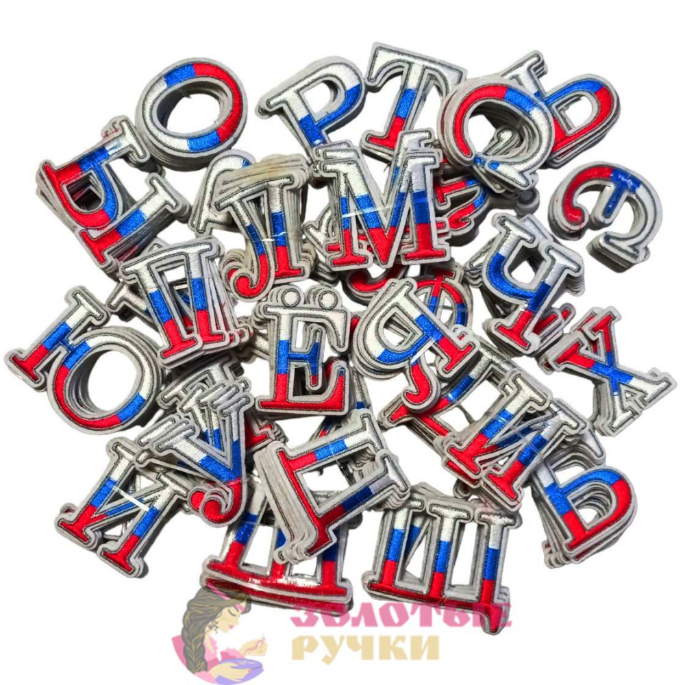 Термоаппликации для одежды "Буквы русские триколор". Высота: 4,5 см. Количество в упаковке: 330 шт.