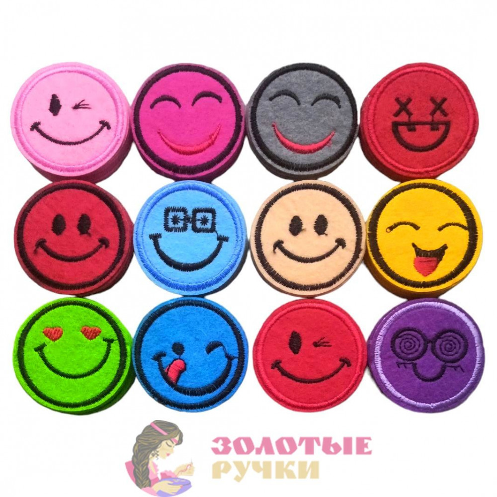 Термоаппликации для одежды "Смайлики". Диаметр: 4,7 см. Количество в упаковке: 120 шт.