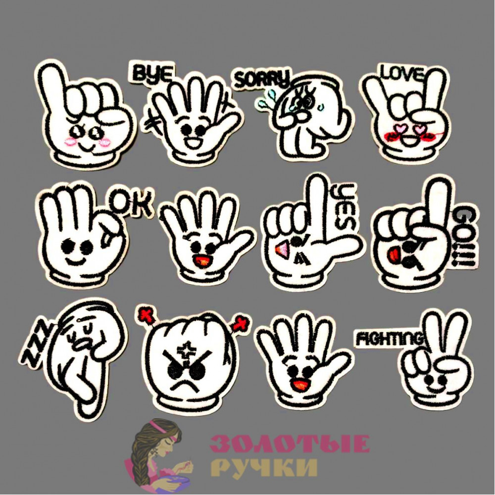 Термоаппликации для одежды "Жесты". Высота: 5,5 см. Количество в упаковке: 120 шт.