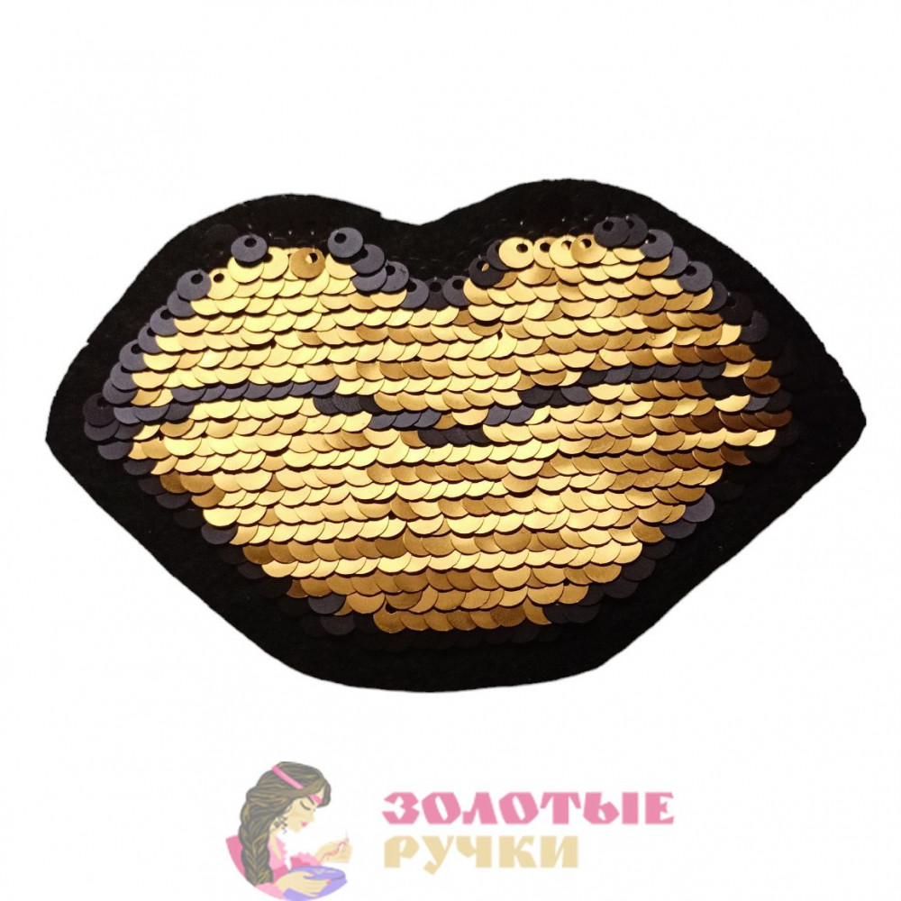 Термоаппликация "Губы" с пайетками меняющая цвет. Цвет: золото. Размер: 7*10 см