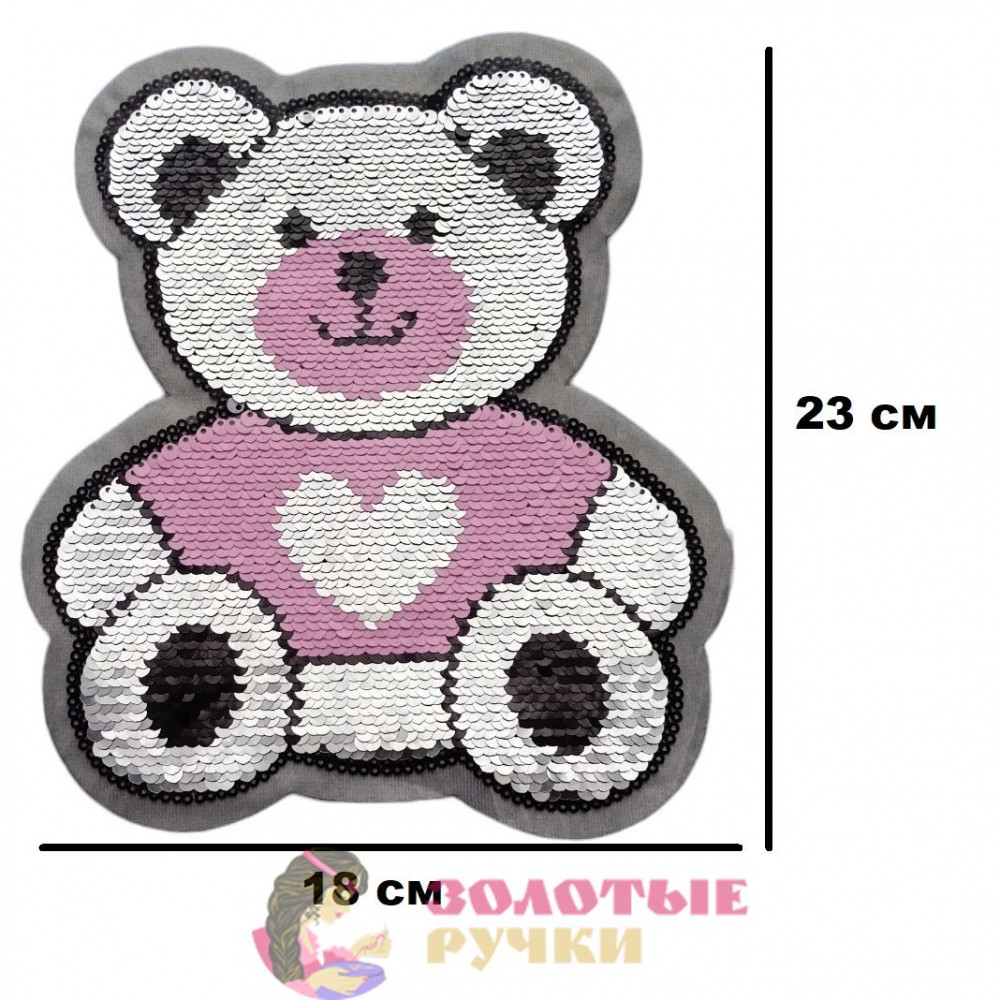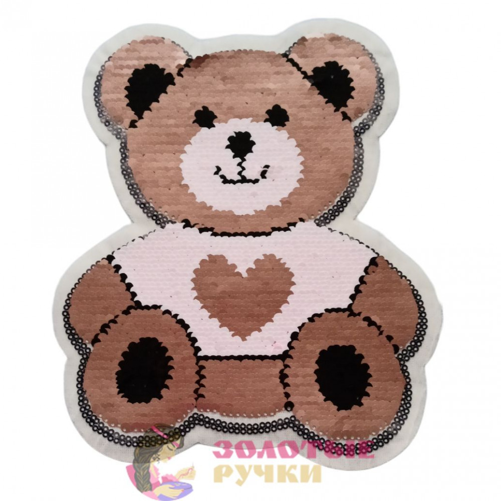 Термоаппликация "Мишка" с пайетками меняющая цвет. Размер: 23*18 см