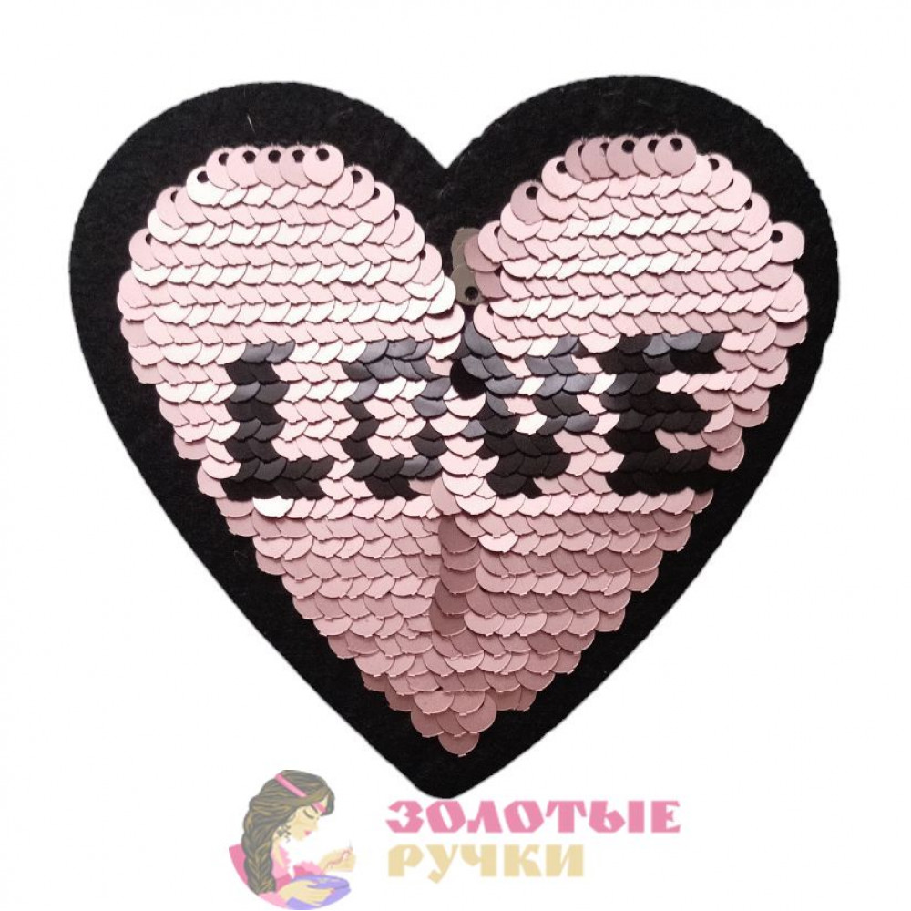 Термоаппликация "Сердце" с пайетками меняющая цвет. Цвет: розовый. Размер: 9*9 см